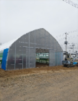 実際に導入された後、お客様からはその実用性と汎用性の高さに大変ご満足いただいております。本製品は用途に合わせてハウス本体の被覆材を透明、白黒、白白などの各種POフィルムから自由に選択できる強みがあります。今回は育苗と倉庫という複合的な目的に合わせ、高い天井による広々とした空間を確保するとともに、サイド換気や妻換気といったオプション設備を導入しました。これにより、テント倉庫では実現が難しかった夏場の厳しい暑さ対策や、育苗に欠かせない細やかな換気コントロールが可能となり、大切な大型農機を風雨から守る堅牢な格納庫としてだけでなく、高品質な苗を育てるための快適な環境づくりにも大きな効果を発揮しています。